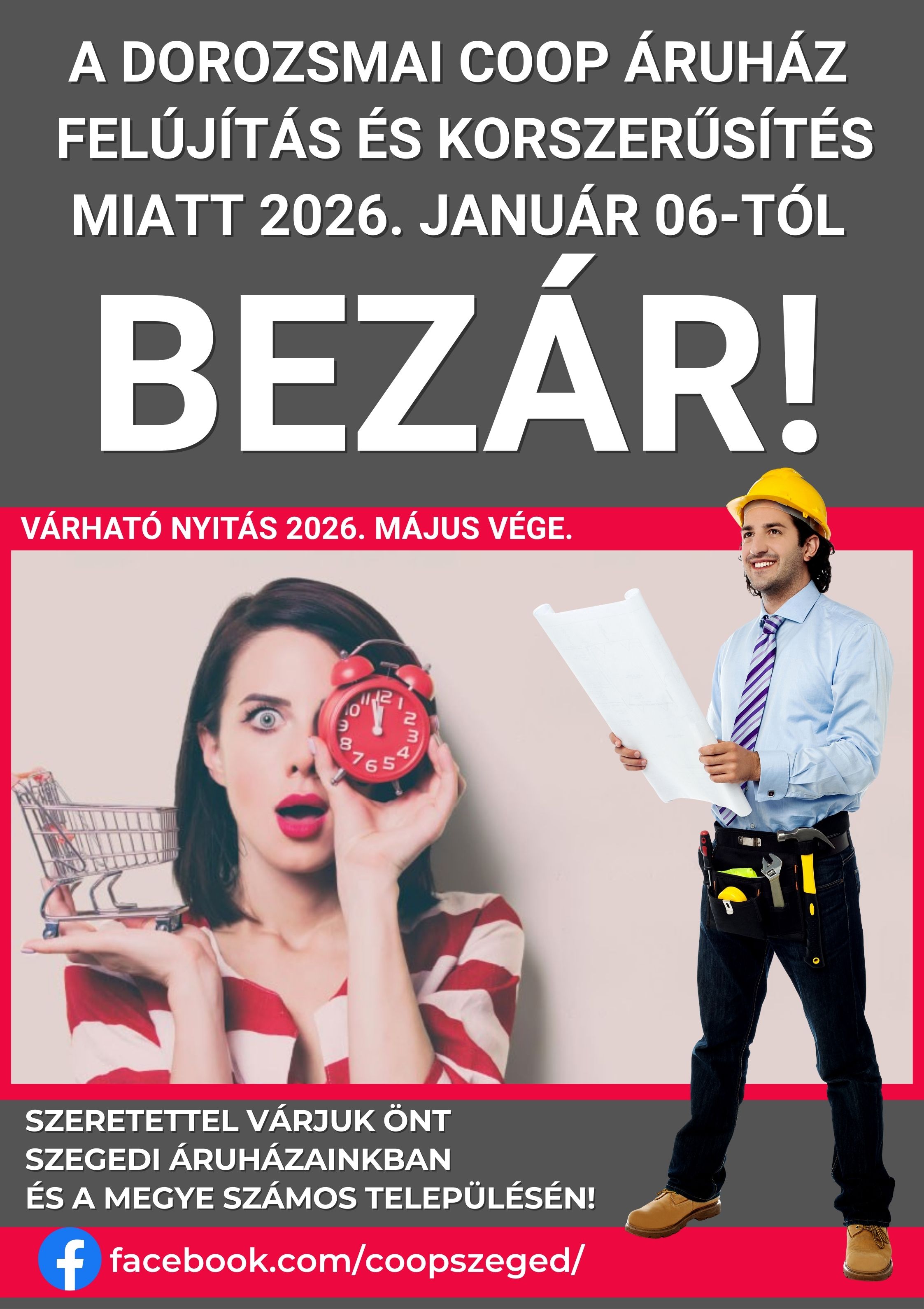 Kiskundorozsma 201.sz. Dorozsma Coop Szuper Áruház Dorozsma Coop Áruház 6791 Kiskundorozsma, Szt. János tér 1. Nyitvatartás:H-P: 6:00-20:00 Sz: 6:00-14:00 V: 7:00-12:00 E-mail: Ez az e-mail-cím a szpemrobotok elleni védelem alatt áll. Megtekintéséhez engedélyeznie kell a JavaScript használatát. Telefon: +36-62/550-688
